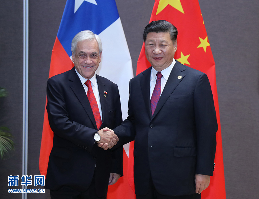 習(xí)近平指出,智利是第一個同新中國建交的南美洲國家,中智關(guān)系長期走在中拉關(guān)系前列。新形勢下,我們要繼續(xù)推動中智合作再上新臺階。我祝賀你第二次擔任智利總統(tǒng),相信在我們共同引領(lǐng)下,中智全面戰(zhàn)略伙伴關(guān)系一定會開創(chuàng)新局面,實現(xiàn)新發(fā)展,為提升中拉整體合作作出更大貢獻。
