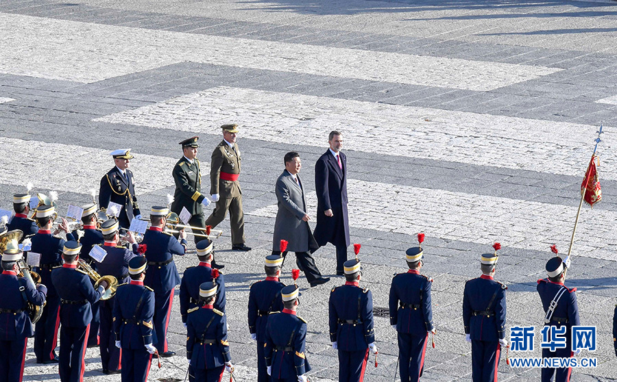 新華社馬德里11月28日電(記者郝薇薇)當?shù)貢r間11月28日,國家主席習(xí)近平在馬德里出席西班牙國王費利佩六世舉行的隆重、盛大的歡迎儀式。