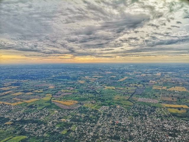 從飛機上俯瞰布宜諾斯艾利斯和拉普拉塔河南岸。(新華社記者王曄攝)