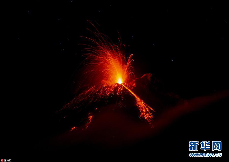 意大利埃特納火山噴發(fā) 熔巖噴射猶如煙火綻放