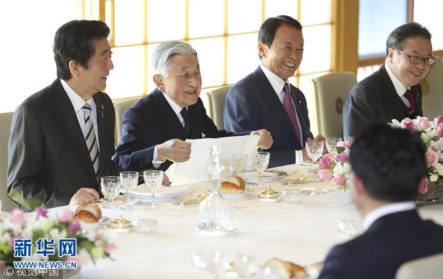 當(dāng)?shù)貢r(shí)間2018年12月17日,日本東京,日本明仁天皇在皇宮與日本首相安倍晉三領(lǐng)導(dǎo)的政府高官共進(jìn)年終午餐。(圖片來(lái)源:視覺中國(guó))