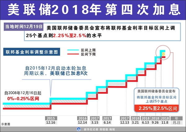 美聯(lián)儲2018年第四次加息 新華社記者 胥曉璇 編制