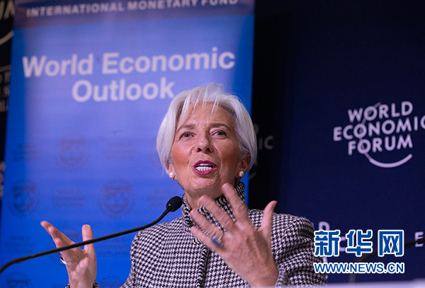 1月21日,在瑞士達(dá)沃斯,國際貨幣基金組織總裁拉加德在記者會上講話。 新華社記者 徐金泉 攝