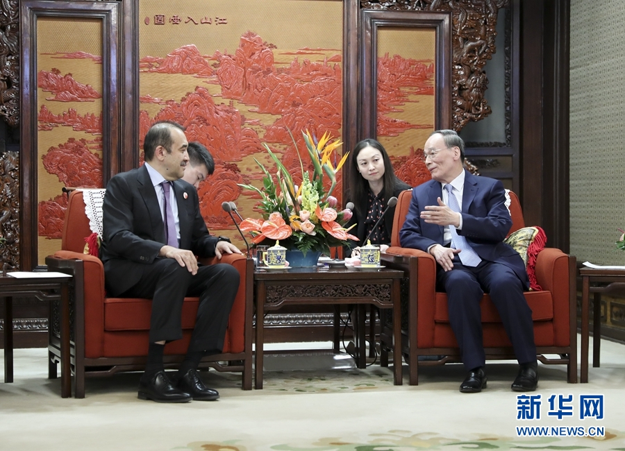 新華社北京4月8日電(記者伍岳)國家副主席王岐山8日在中南海紫光閣會(huì)見哈薩克斯坦國家安全委員會(huì)主席馬西莫夫。