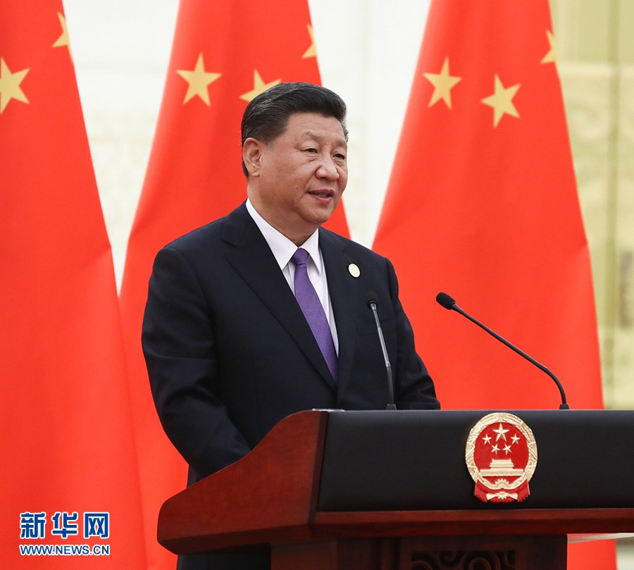 5月14日,國(guó)家主席習(xí)近平和夫人彭麗媛在北京人民大會(huì)堂舉行宴會(huì),歡迎出席亞洲文明對(duì)話大會(huì)的外方領(lǐng)導(dǎo)人夫婦及嘉賓。這是習(xí)近平在宴會(huì)上發(fā)表致辭。 新華社記者 鞠鵬 攝