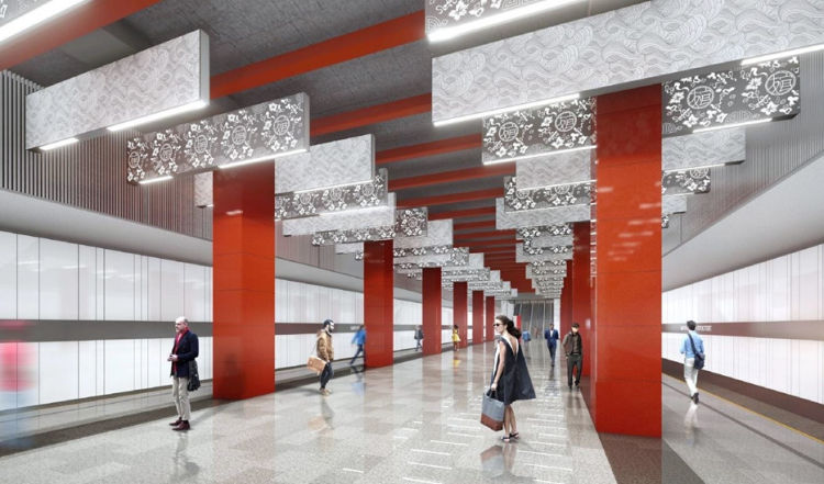 值得一提的是,米丘林大街站未來將以“中國風(fēng)”形象亮相。屆時,梅花、云紋、團壽、八仙紋、中國紅等元素將為“最美地下宮殿”添一筆中國色彩。