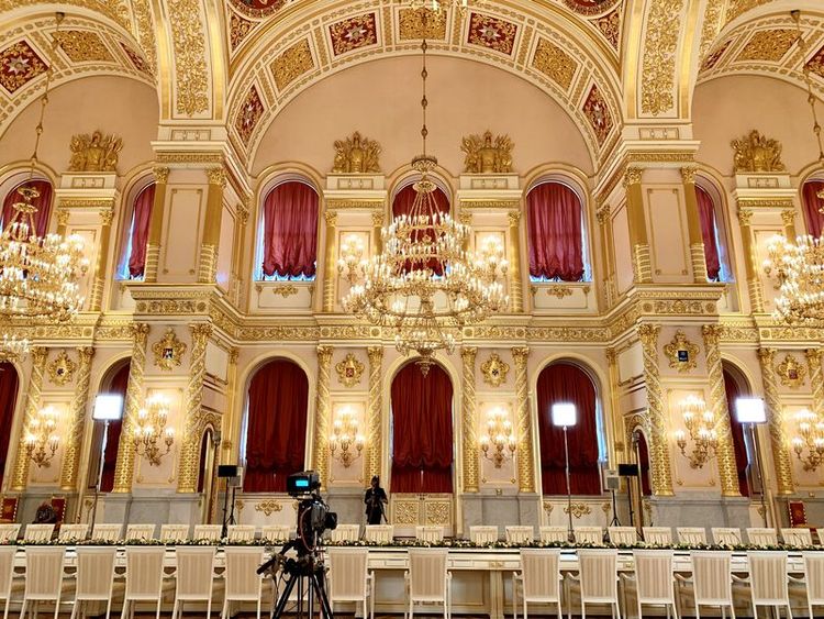 這是克里姆林宮亞歷山大廳,中俄兩國元首大范圍會(huì)談在這里舉行。新華社記者丁林?jǐn)z