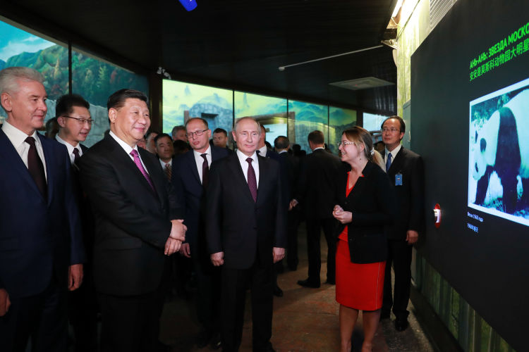 當(dāng)?shù)貢r(shí)間晚上8時(shí)許,習(xí)近平主席抵達(dá)莫斯科動(dòng)物園,與普京總統(tǒng)一道出席了熊貓館開館儀式。