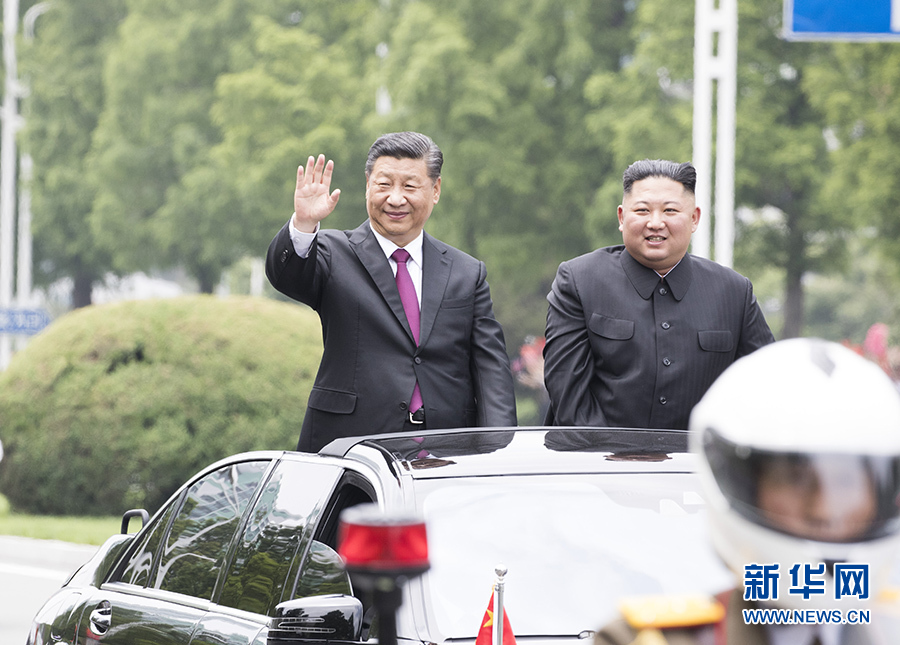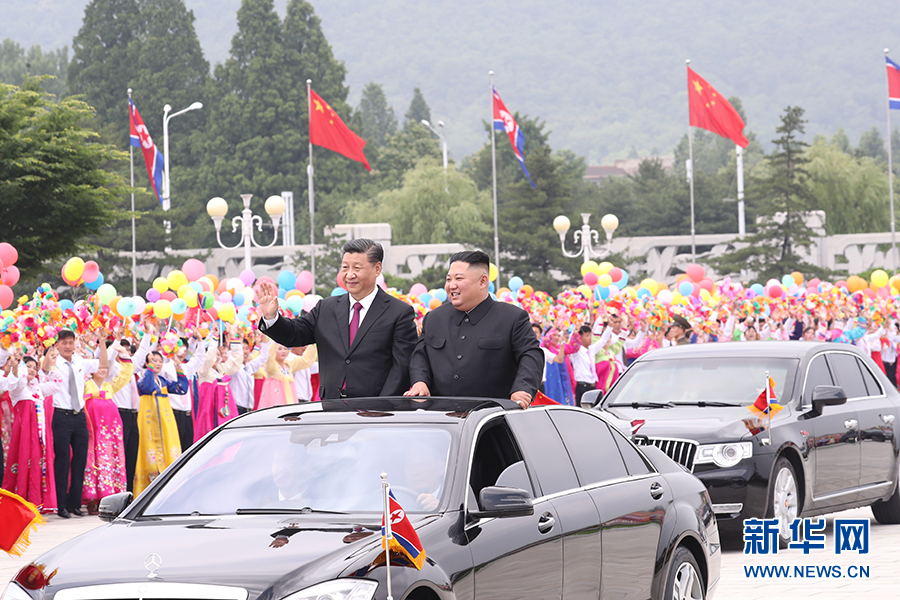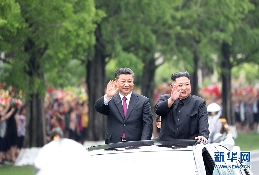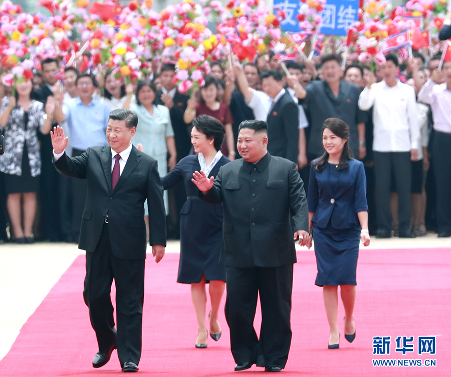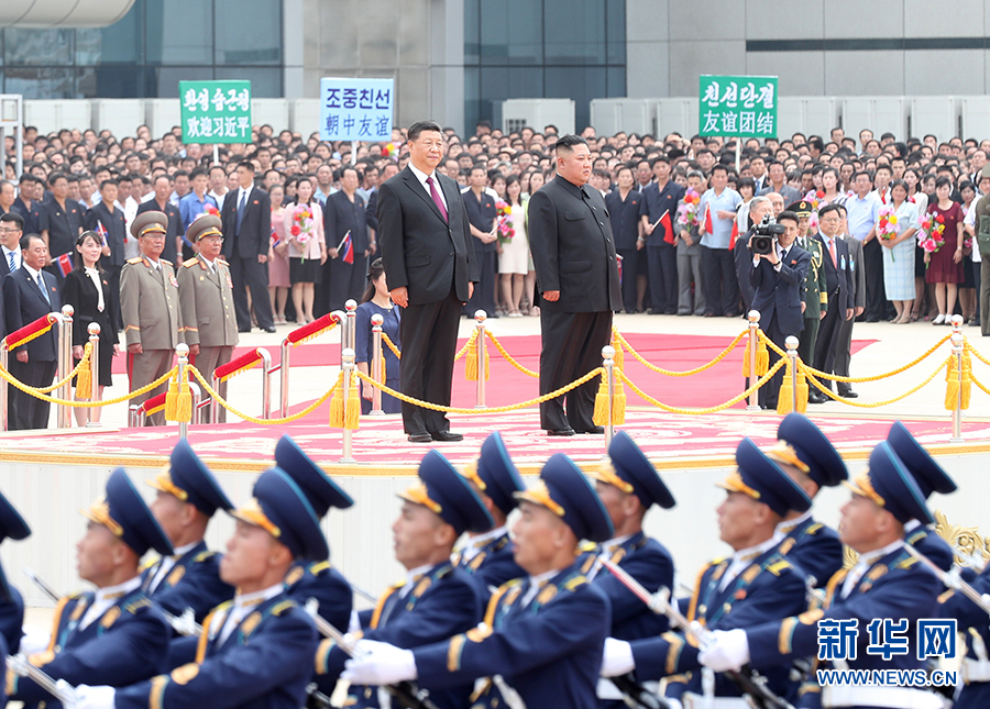 6月20日,中共中央總書記、國家主席習(xí)近平乘專機(jī)抵達(dá)平壤,開始對(duì)朝鮮民主主義人民共和國進(jìn)行國事訪問。朝鮮勞動(dòng)黨委員長、國務(wù)委員會(huì)委員長金正恩和夫人李雪主到機(jī)場熱情迎接習(xí)近平和夫人彭麗媛。朝方在機(jī)場舉行隆重歡迎儀式。歡迎儀式結(jié)束后,習(xí)近平與金正恩同車前往錦繡山太陽宮廣場,沿途數(shù)十萬群眾夾道歡迎。 新華社記者 申宏 攝