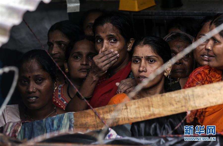 7月2日,在印度孟買,人們聚集在墻體垮塌事故現(xiàn)場(chǎng)。新華社發(fā)