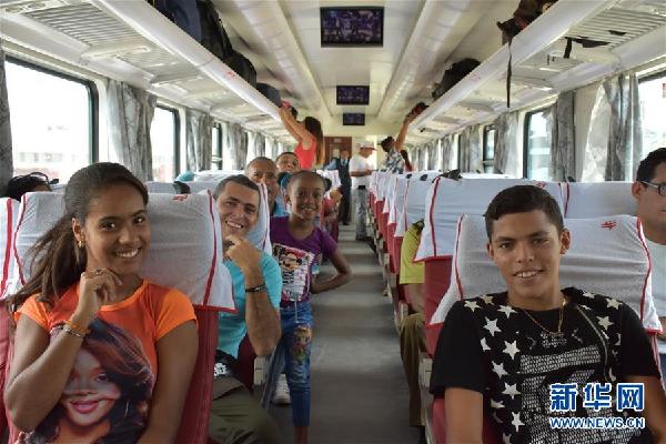 古巴正值暑期客運(yùn)旺季,列車上嶄新的空調(diào)、閱讀燈、可旋轉(zhuǎn)座椅等設(shè)施使古巴乘客驚喜不已。得知記者是中國人,多名乘客表示“感謝中國和中國火車”“特別期待這次旅程”。