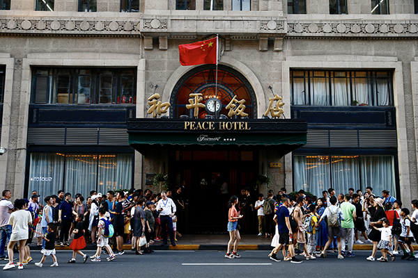 夜幕降臨,在燈光的輝映下,和平飯店更顯滄桑與榮耀。這座已有90年歷史的飯店曾經(jīng)見(jiàn)證過(guò)許多中美兩國(guó)交往的重要場(chǎng)景,不僅老布什、克林頓、奧巴馬等多位美國(guó)前政要曾來(lái)過(guò)這里,1971年美國(guó)乒乓代表團(tuán)訪問(wèn)中國(guó)時(shí),也曾住在這里。