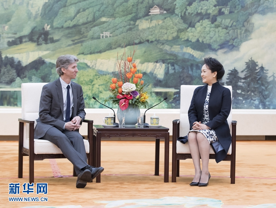 1月8日,國家主席習近平夫人彭麗媛在北京會見美國茱莉亞學院院長沃澤爾。 新華社記者 王曄 攝