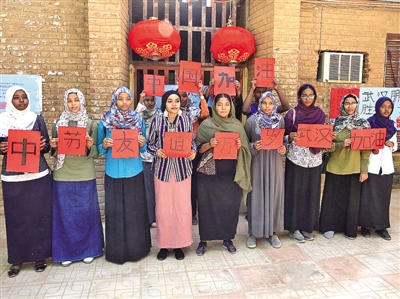 2月25日,在蘇丹喀土穆大學(xué),數(shù)十名蘇丹喀土穆大學(xué)中文系的學(xué)生參加中國文化展覽活動,一起為中國抗擊疫情打氣。新華社發(fā)