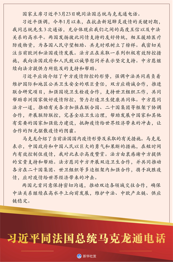 圖表:習(xí)近平同法國(guó)總統(tǒng)馬克龍通電話(huà) 新華社發(fā)