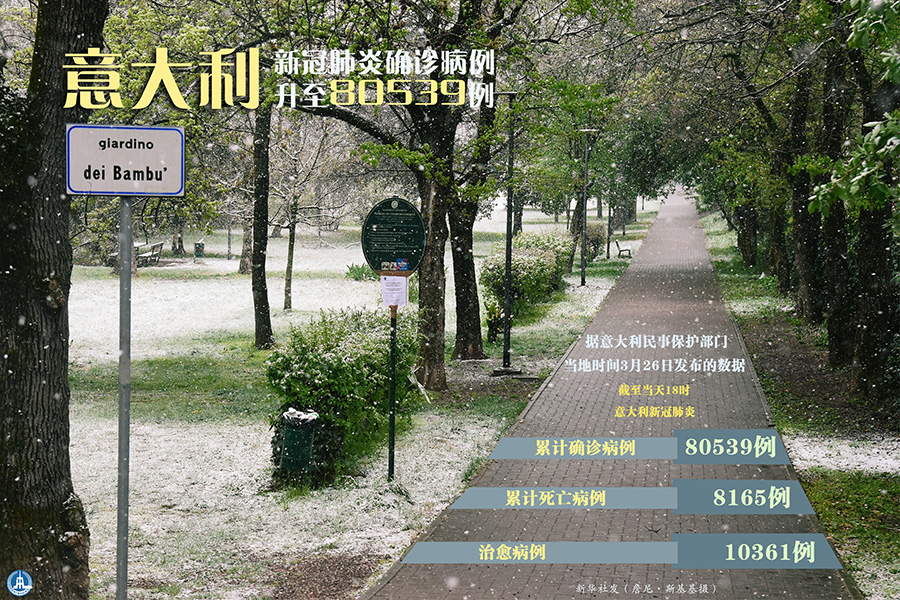 新華社羅馬3月26日電(記者李潔)據(jù)意大利民事保護部門26日發(fā)布的數(shù)據(jù),截至當天18時,意大利累計新冠肺炎確診病例升至80539例,累計死亡病例8165例,治愈病例10361例。
