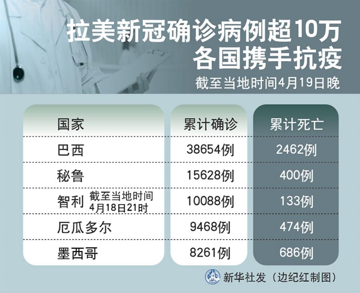 新華社圣保羅4月19日電? 綜述:拉美新冠確診病例超10萬 各國攜手抗疫
