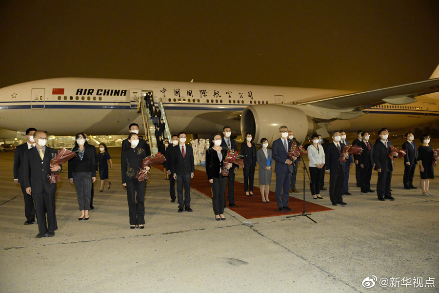 8月17日晚,中國(guó)駐休斯敦總領(lǐng)事館全體館員乘包機(jī)抵達(dá)北京,外交部在首都機(jī)場(chǎng)舉行簡(jiǎn)短莊重迎接儀式。(記者成欣、岳月偉) ????