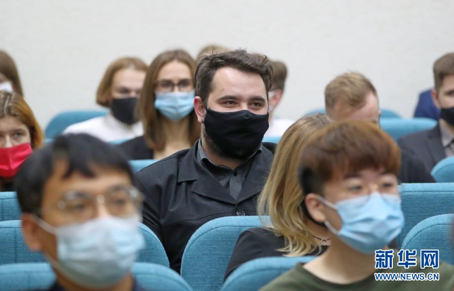 11月17日,人們?cè)诎锥砹_斯首都明斯克參加第七屆中白青年創(chuàng)新論壇開幕式。新華社發(fā)(任科夫攝)