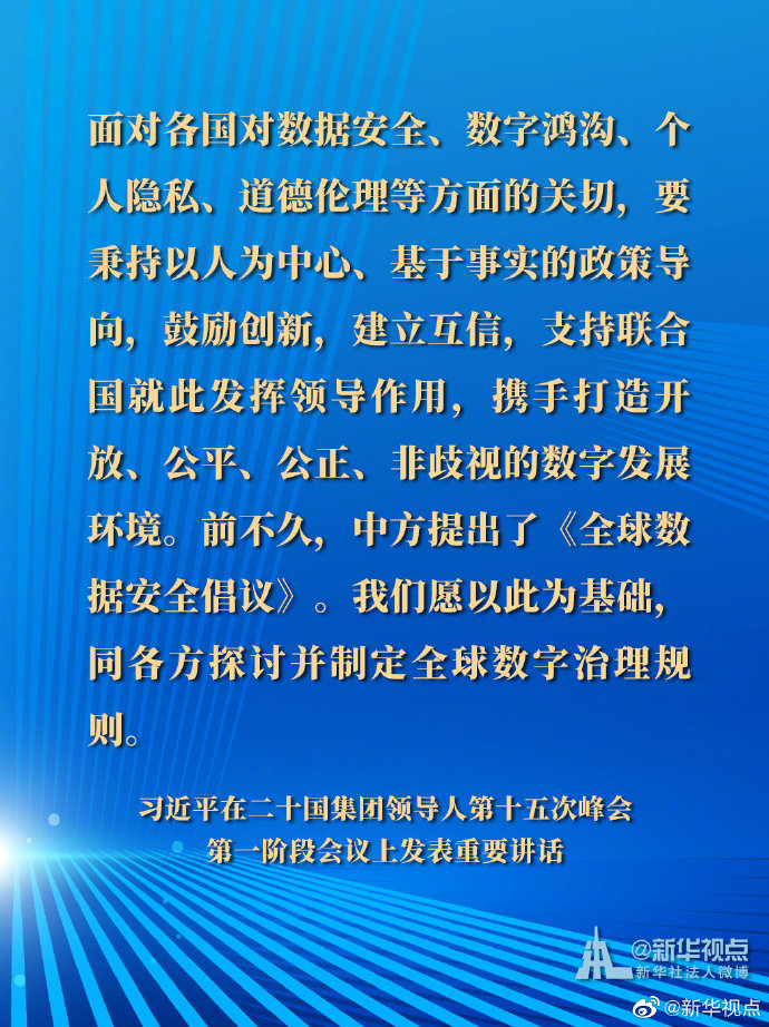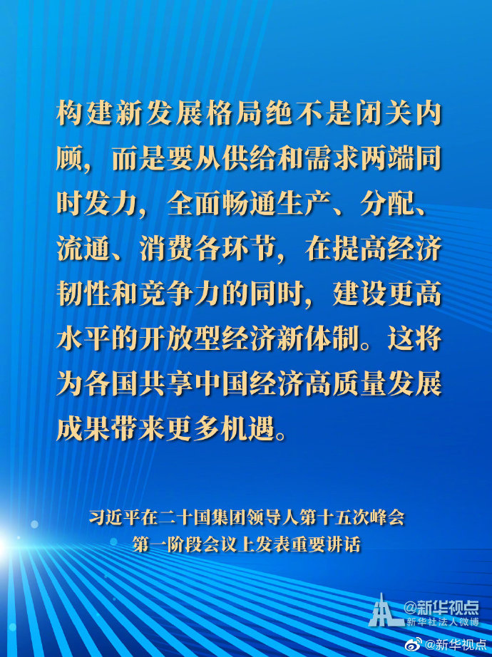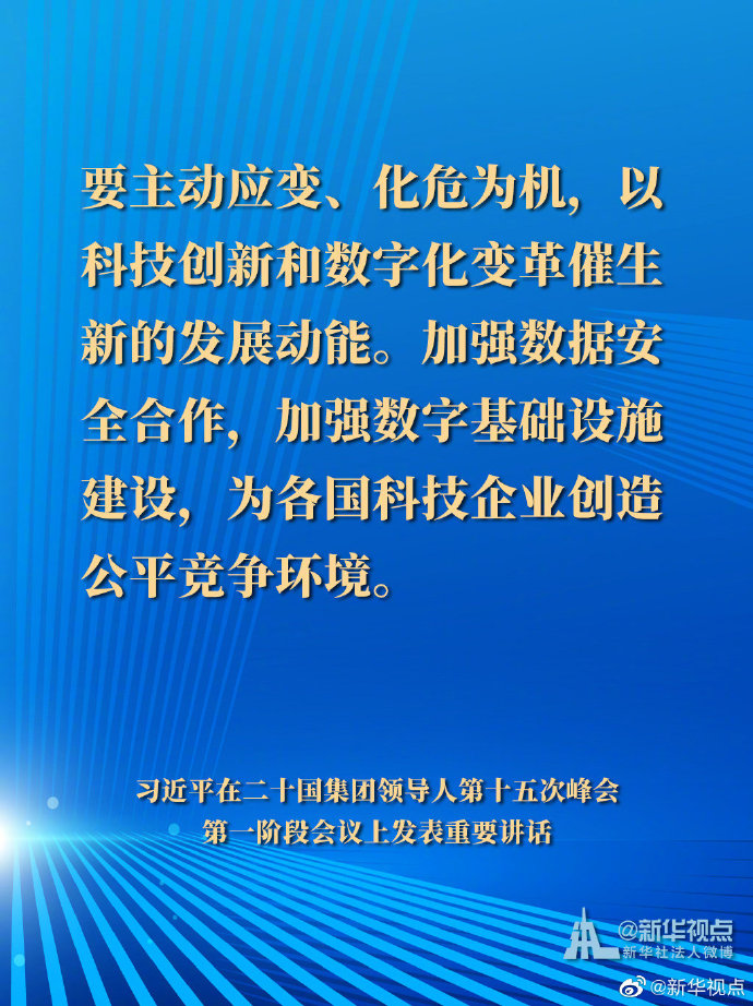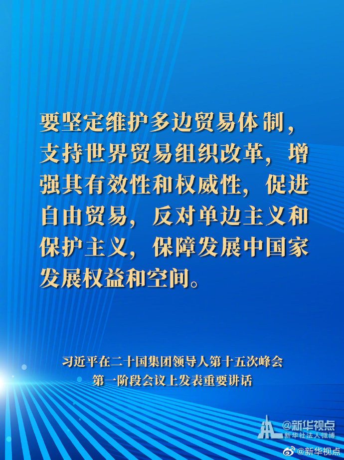 習(xí)近平在二十國集團(tuán)領(lǐng)導(dǎo)人第十五次峰會第一階段會議講話要點(diǎn)