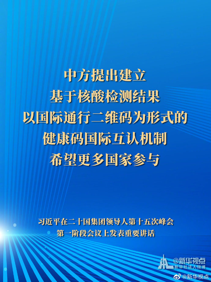 11月21日,國(guó)家主席習(xí)近平在二十國(guó)集團(tuán)領(lǐng)導(dǎo)人第十五次峰會(huì)第一階段會(huì)議上發(fā)表重要講話。一起來(lái)看習(xí)主席的G20金句。
