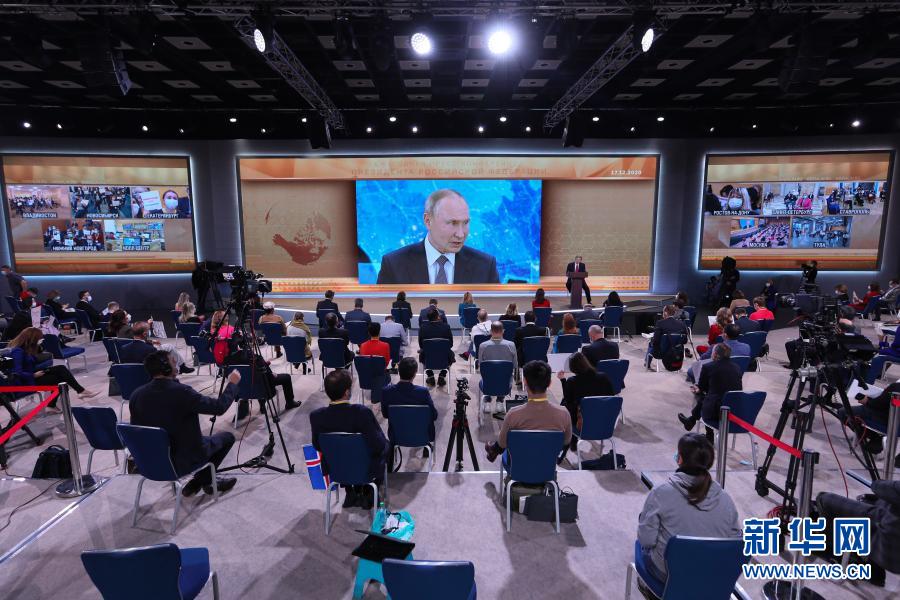 12月17日,在俄羅斯首都莫斯科,普京年度記者會以視頻方式舉行。當日,俄羅斯總統(tǒng)普京在莫斯科召開年度記者會。受疫情影響,本次年度記者會以普京在莫斯科郊區(qū)的官邸通過視頻與記者交流的方式舉行。新華社發(fā)(葉甫蓋尼·西尼岑攝)