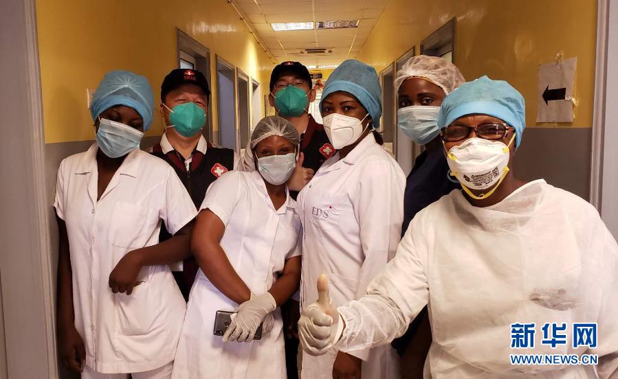 5月26日,中國(guó)抗疫醫(yī)療專(zhuān)家組在剛果(布)首都布拉柴維爾指導(dǎo)新冠肺炎病房建設(shè)時(shí),與當(dāng)?shù)匾痪€(xiàn)醫(yī)務(wù)人員合影。新華社發(fā)