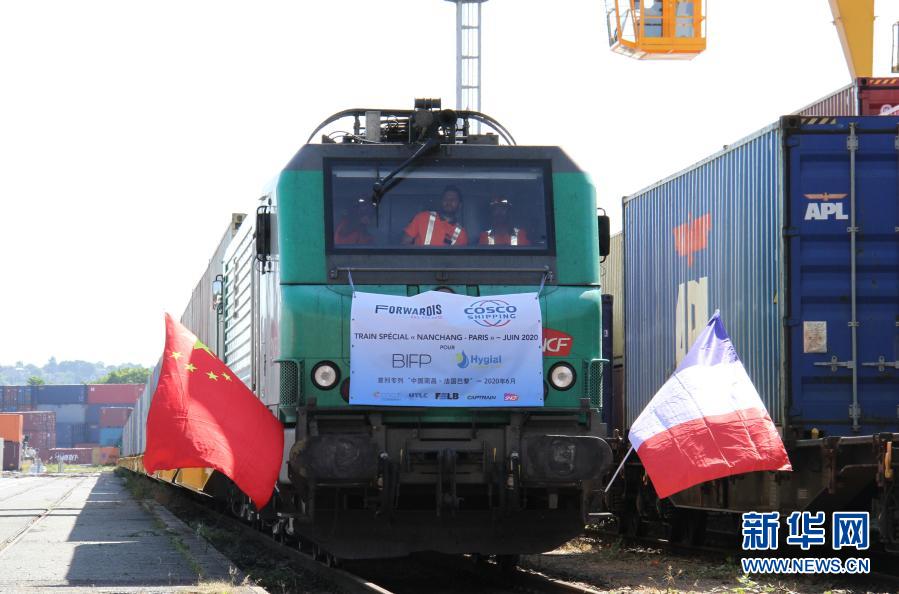 6月23日,滿(mǎn)載防疫物資的中歐班列抵達(dá)法國(guó)巴黎東南郊的瓦朗通,此次班列是中法首趟抗疫物資專(zhuān)列。新華社記者 徐永春 攝?
