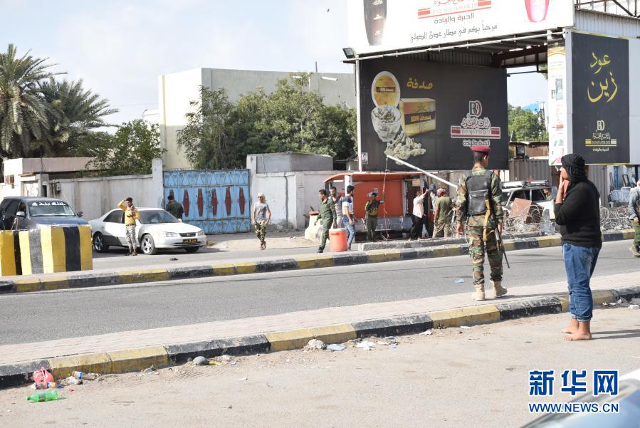12月30日,在也門亞丁,政府軍士兵在爆炸后封鎖了亞丁國際機(jī)場(chǎng)的入口。新華社發(fā)(穆拉德·阿卜杜攝)