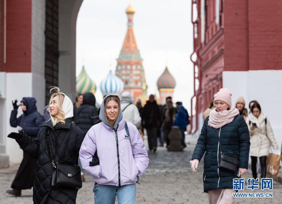 3月23日,在俄羅斯首都莫斯科,人們走在紅場(chǎng)附近。