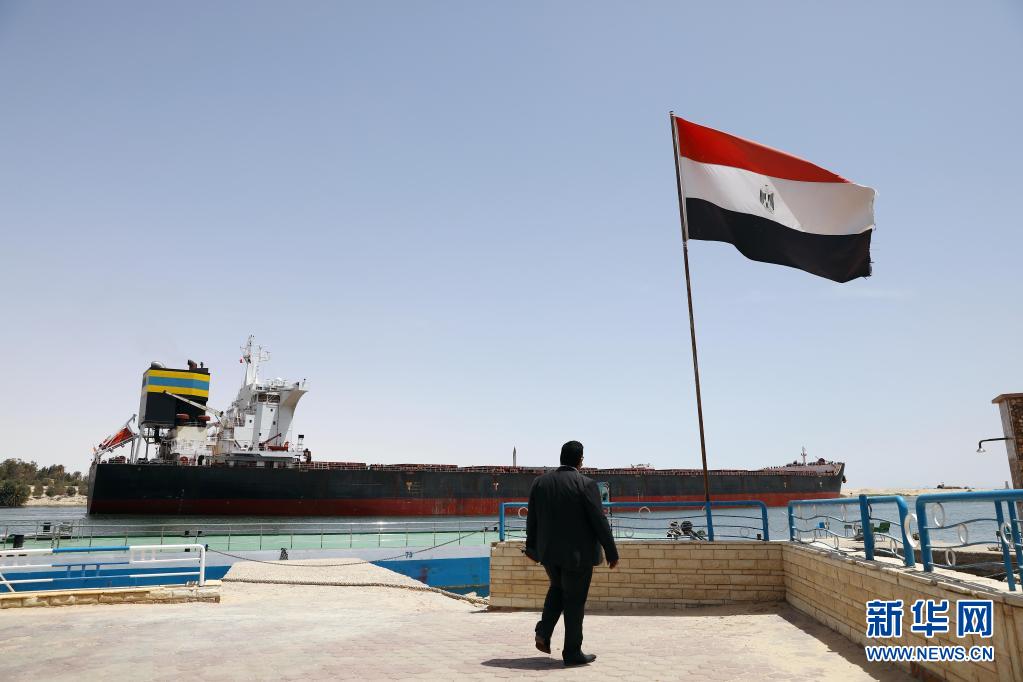 這是5月30日在埃及伊斯梅利亞省拍攝的航行在蘇伊士運(yùn)河上的貨船。