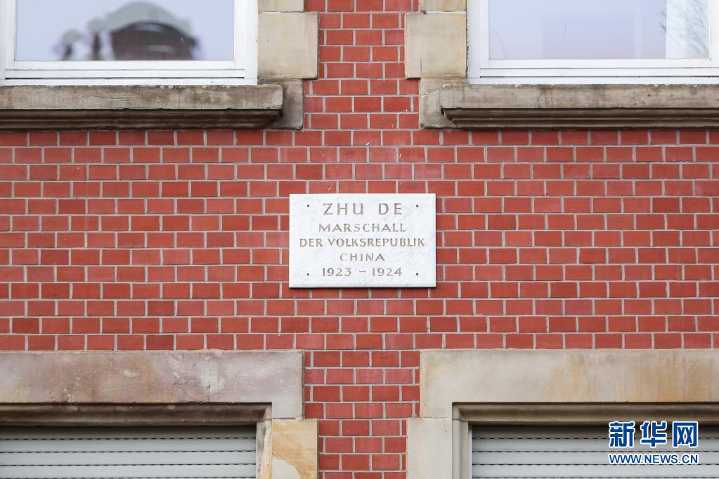 這是2021年4月16日在德國哥廷根拍攝的普朗克街3號朱德故居,正墻上掛著一塊精致的大理石紀(jì)念牌匾,上面用德語鐫刻著“朱德,中華人民共和國元帥”等字樣。 新華社記者 單宇琦 攝
