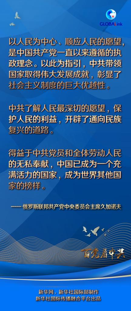 久加諾夫?qū)χ袊伯a(chǎn)黨百年華誕表示祝賀?;仡櫚倌隁v程,他表示,中共了解人民最深切的愿望,保護(hù)人民的利益,開辟了通向民族復(fù)興的道路。