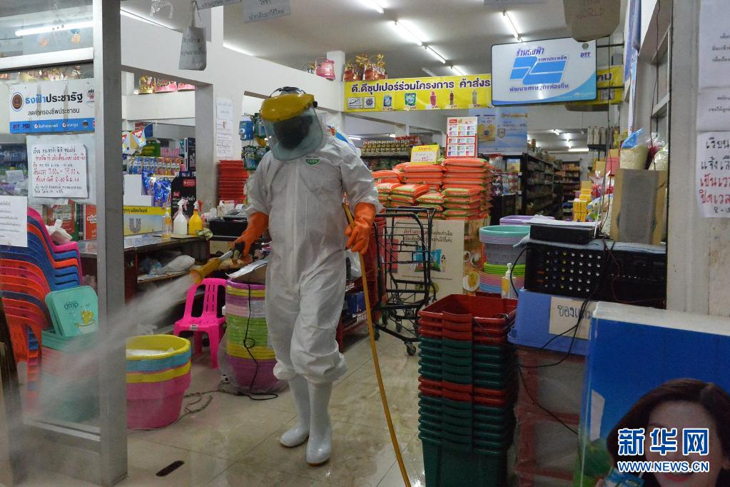 6月21日,工作人員在泰國(guó)首都曼谷一處生鮮市場(chǎng)進(jìn)行消毒。