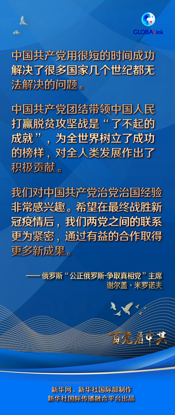 米羅諾夫說,中國(guó)共產(chǎn)黨團(tuán)結(jié)帶領(lǐng)中國(guó)人民打贏脫貧攻堅(jiān)戰(zhàn)是“了不起的成就”,為全世界樹立了成功的榜樣,對(duì)全人類發(fā)展作出了積極貢獻(xiàn)。