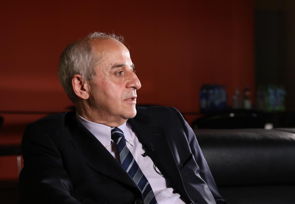 6月1日,意大利共產(chǎn)黨全國書記毛羅·阿爾博雷西在意大利首都羅馬接受新華社記者專訪。新華社記者 程婷婷 攝